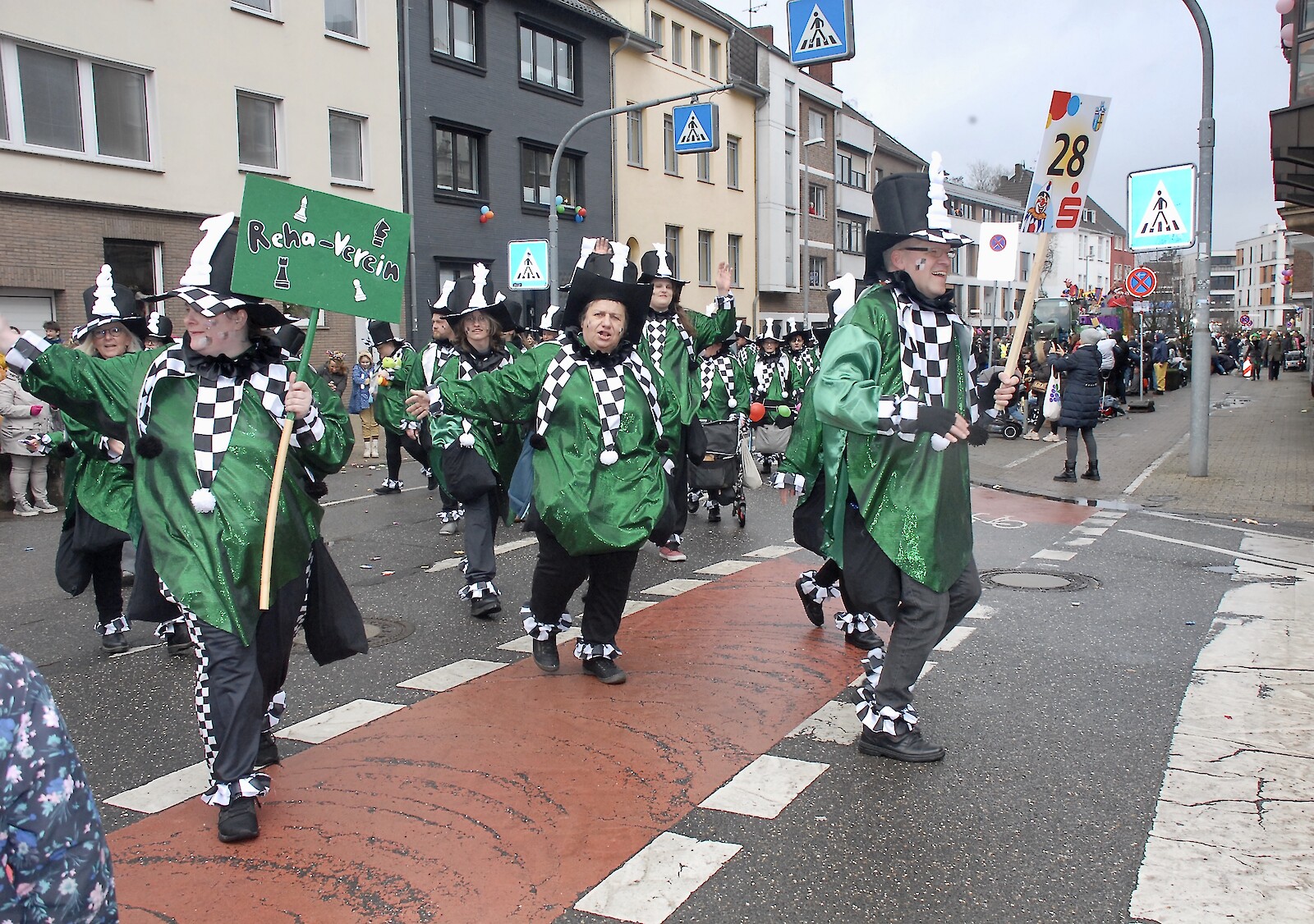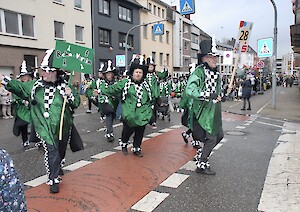 Wie in jedem Jahr zog auch dieses Mal eine Fußgruppe des Reha-Vereins in selbst geschneiderten Kostümen beim Veilchendienstagszug mit.
