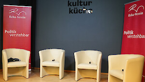 Poltik verstehbar, das Projekt von L;ve völlig normal, dem Social Media Team des Reha-Vereins, hatte daher zu einer neuen Veranstaltungsrunde eingeladen. Im Juli kamen die Kandidaten (tatsächlich nur Männer!) von FDP, SPD und CDU zum Gespräch in die Kulturküche, Die Linke und Bündnis 90 / Die Grünen folgten im August. Die Gruppe von "Politik verstehbar" hatte im Vorfeld Fragen gesammelt, die den Nutzerinnen und Nutzern mit Blick auf die Kommunalpolitik in Mönchengladbach wichtig erscheinen. Ein besonderer Fokus lag dabei auf Sozial-, Wohnungs- und Verkehrspolitik sowie auf dem Umgang mit marginalisierten Gruppen.