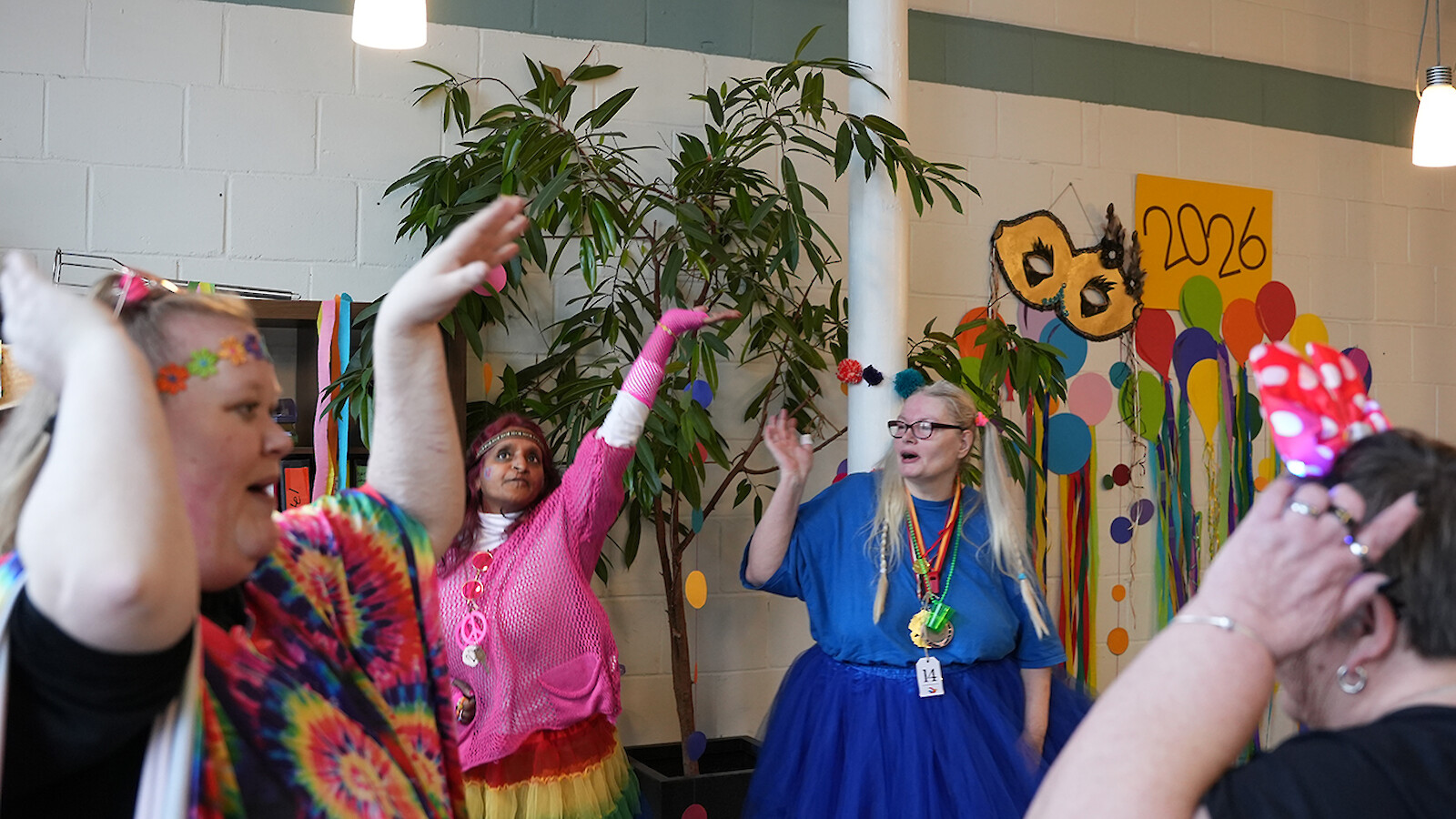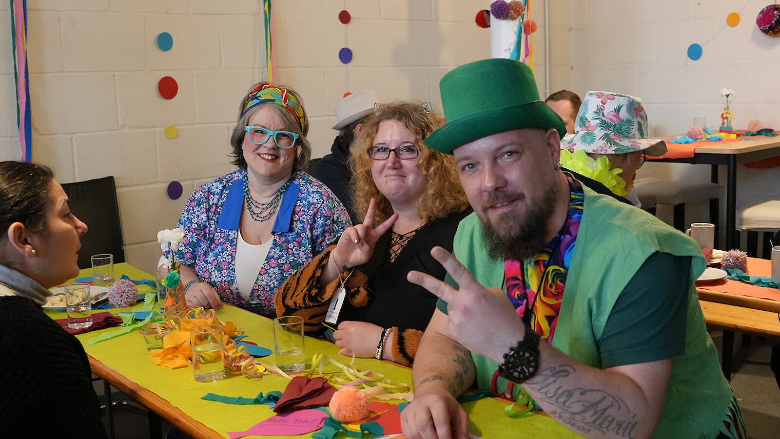 Am 12.02.26 pünktlich um 11:11 Uhr startete die diesjährige große Karnevalsparty im Werkzentrum. Nach einer Einstimmung durch Klaudia Merheim mit einer Runde „Lachyoga“ konnte eigentlich nichts mehr schief gehen: tolle Stimmung, Musik zum Tanzen, leckeres Essen und Bütttenreden von Herrn Pannen und Frau Wolk. Highlight war wieder mal der Besuch der Karnevalsgarde „Alles onger ene Hoot“, in diesem Jahr mit Prinzessin Nele der Zweiten. Sie legten eine flotte Sohle aufs Parkett, in diesem Jahr mit coolen leuchtenden Brillen.